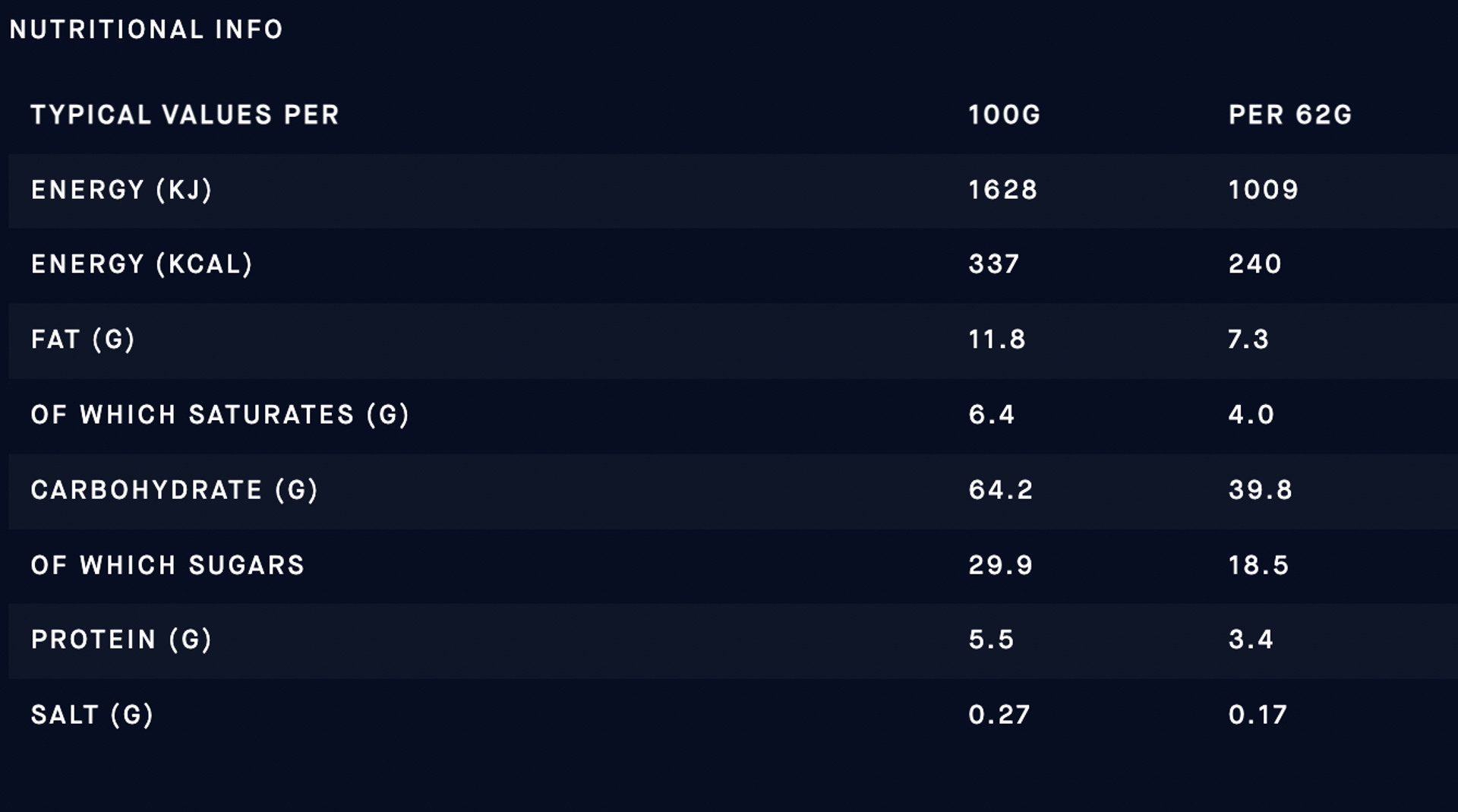 Great tasting easily digested bar that contains over 39g of carbohydrate per bar.