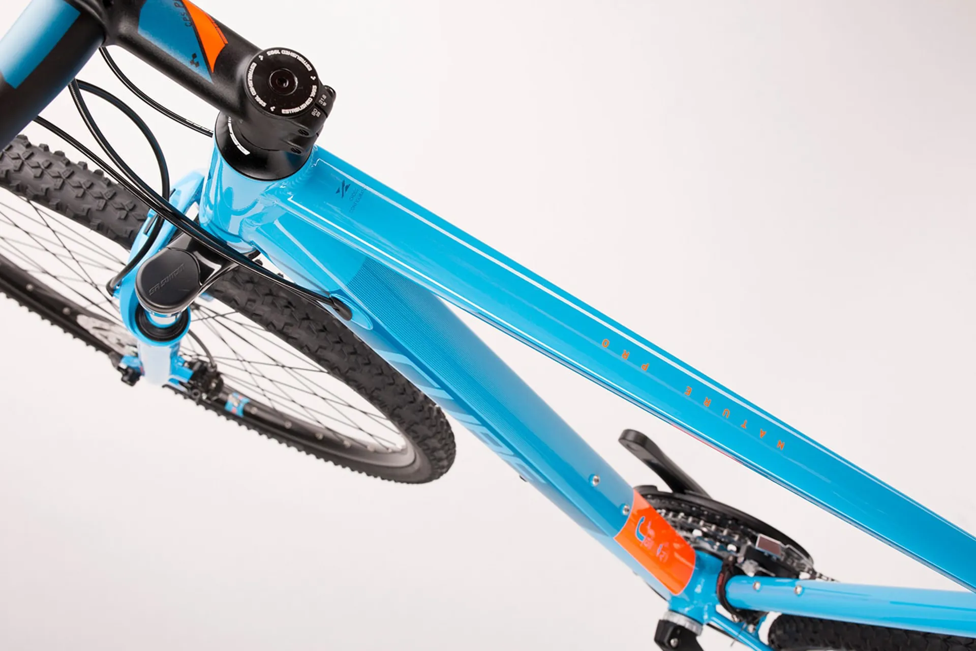 Well-equipped and ready for anything, the Nature Pro brings a new degree of freedom and versatility to the hybrid category. No trail is too rough, no climb too steep. The high quality frame, with its comfortable suspension fork and powerful hydraulic disc brakes, has helped create the ideal all-weather hybrid bike - for fitness, fun and all kinds of everyday adventures. The double butted aluminium frame has stunning looks thanks to its intelligent construction, and delivers very precise steering while being surprisingly light. The ride position is comfortable and efficient, even for long days in the saddle. Thanks to our Frame Safe System, the derailleur hanger is easily replaceable in the event of damage. 3D forged dropouts integrate wtih the disc brake mounts and make it easy to attach our optional CUBEstand, a luggage rack and mudguards. Routing cables inside the down tube provides long-term smooth gear shifting performance, regardless of weather. Shimano's 30 speed Deore drivetrain with Rapidfire Plus levers, a Deore XT rear derailleur and light, stiff Hollowtech chainset provides crisp and reliable performance. The Suntour NEX HLO suspension fork absorbs bumps and vibration and can be locked out instantly for long climbs. Shimano BR-M315 hydraulic disc brakes ensure that bike and rider decelerate perfectly in control, regardless of the conditions. CUBE cockpit and seating components help the Nature Pro rider to stay in control at all times, as well as saving even more weight. We even splashed out on Smart Sam tyres from Schwalbe, so you can be assured of the best grip and low rolling resistance, whatever the road throws at you.